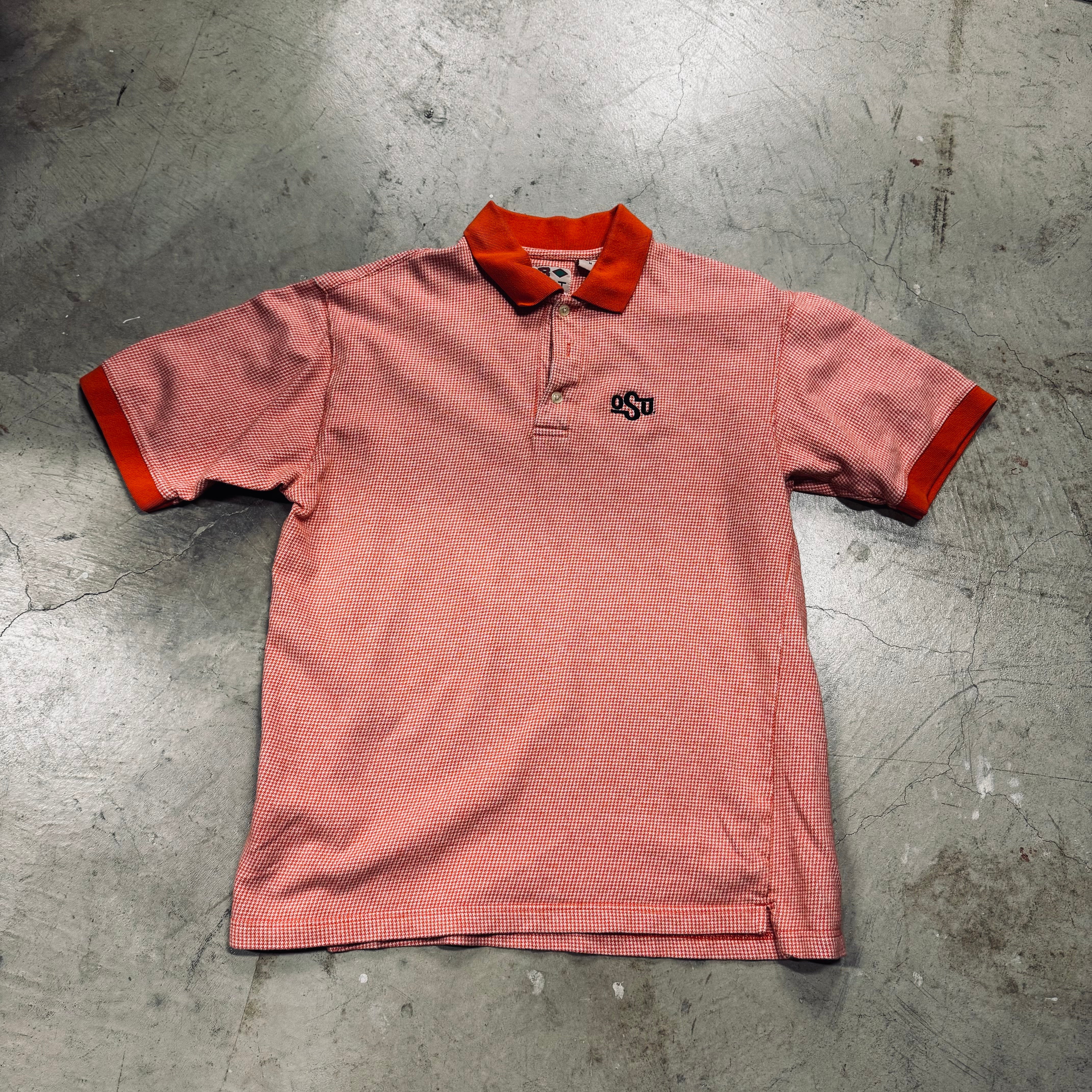 90s OSU Cowboys orange plaid polo shirt / M