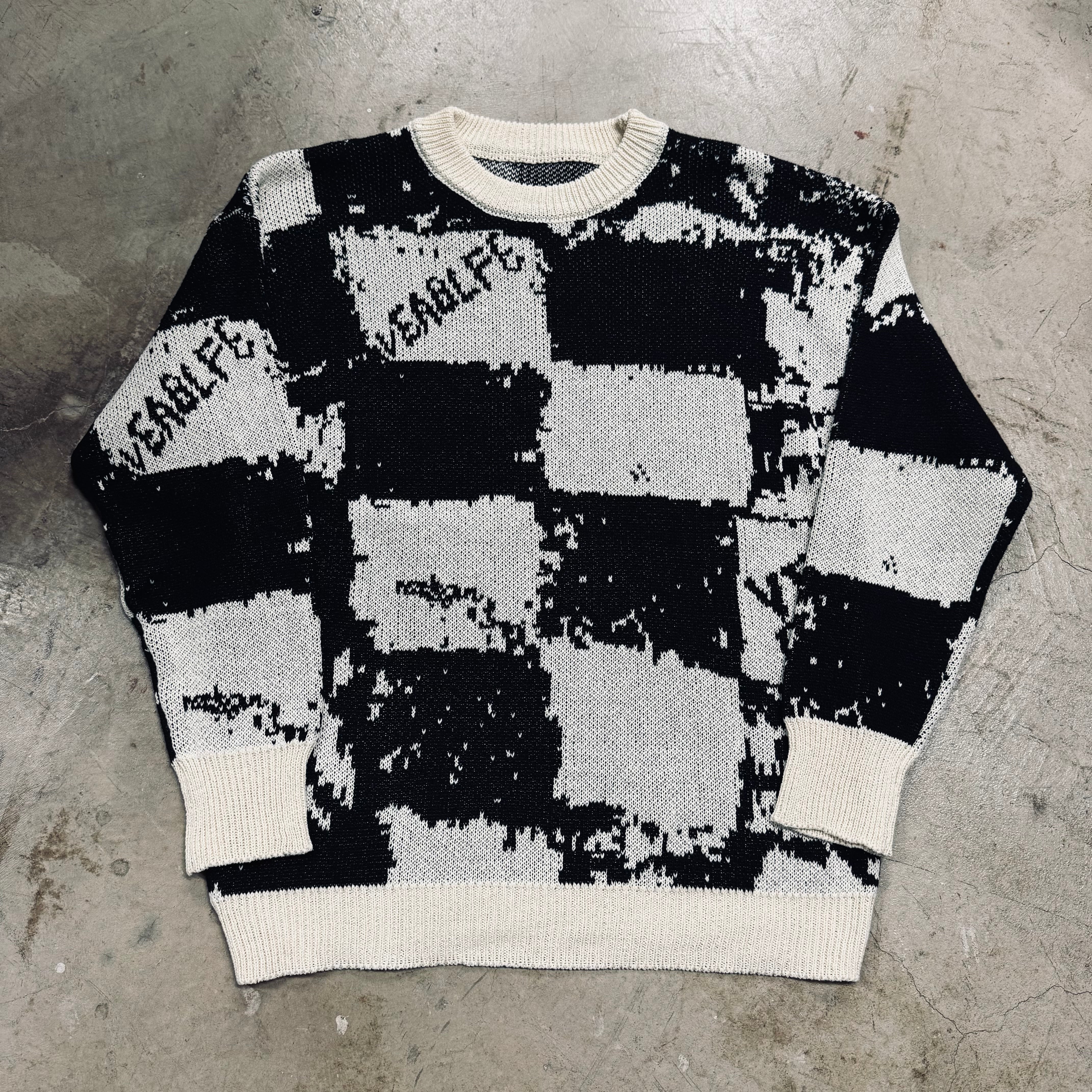 Loose Contrast “Checkerboard” sweater / L