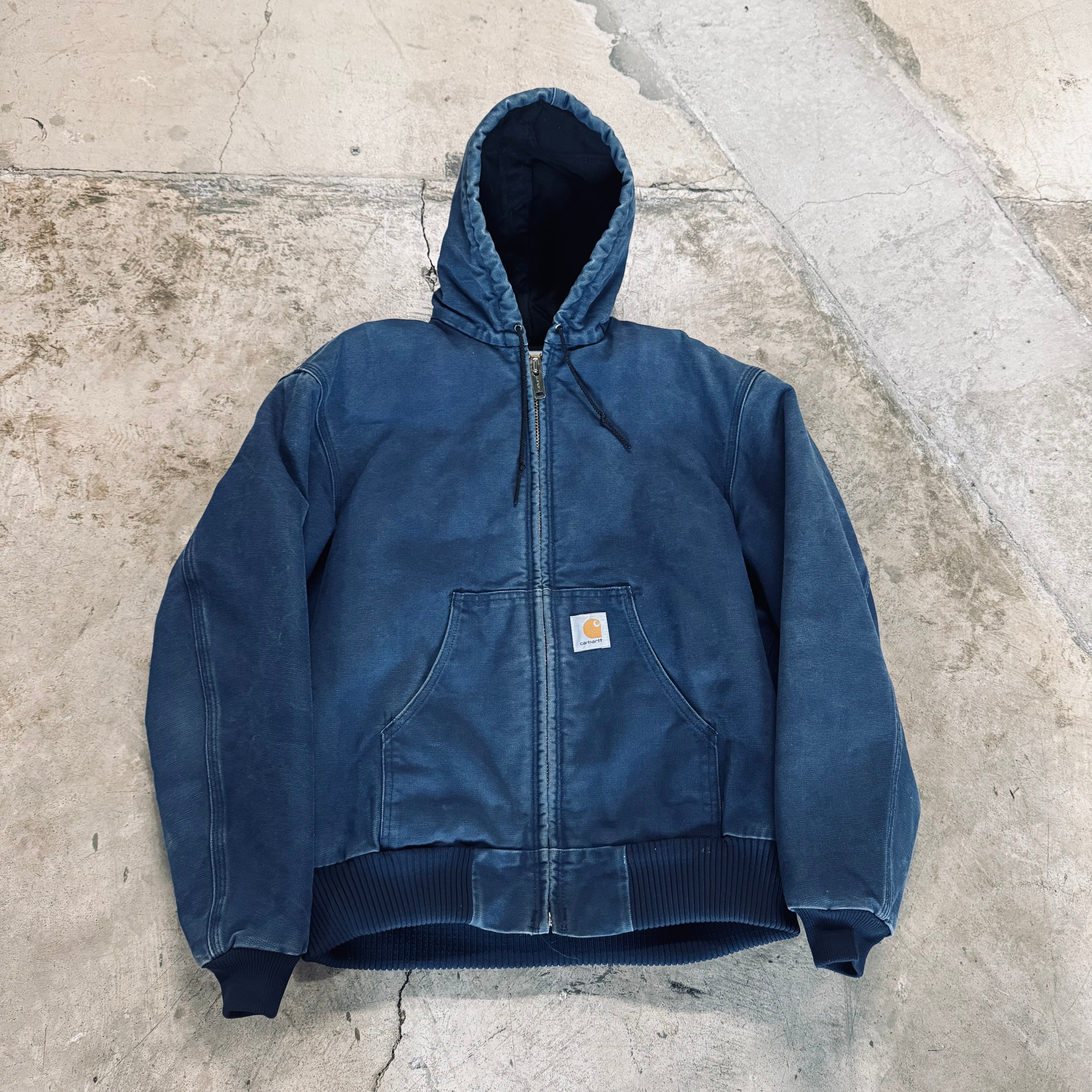 90s Carhartt Navy/Blue Hooded Jacket / L