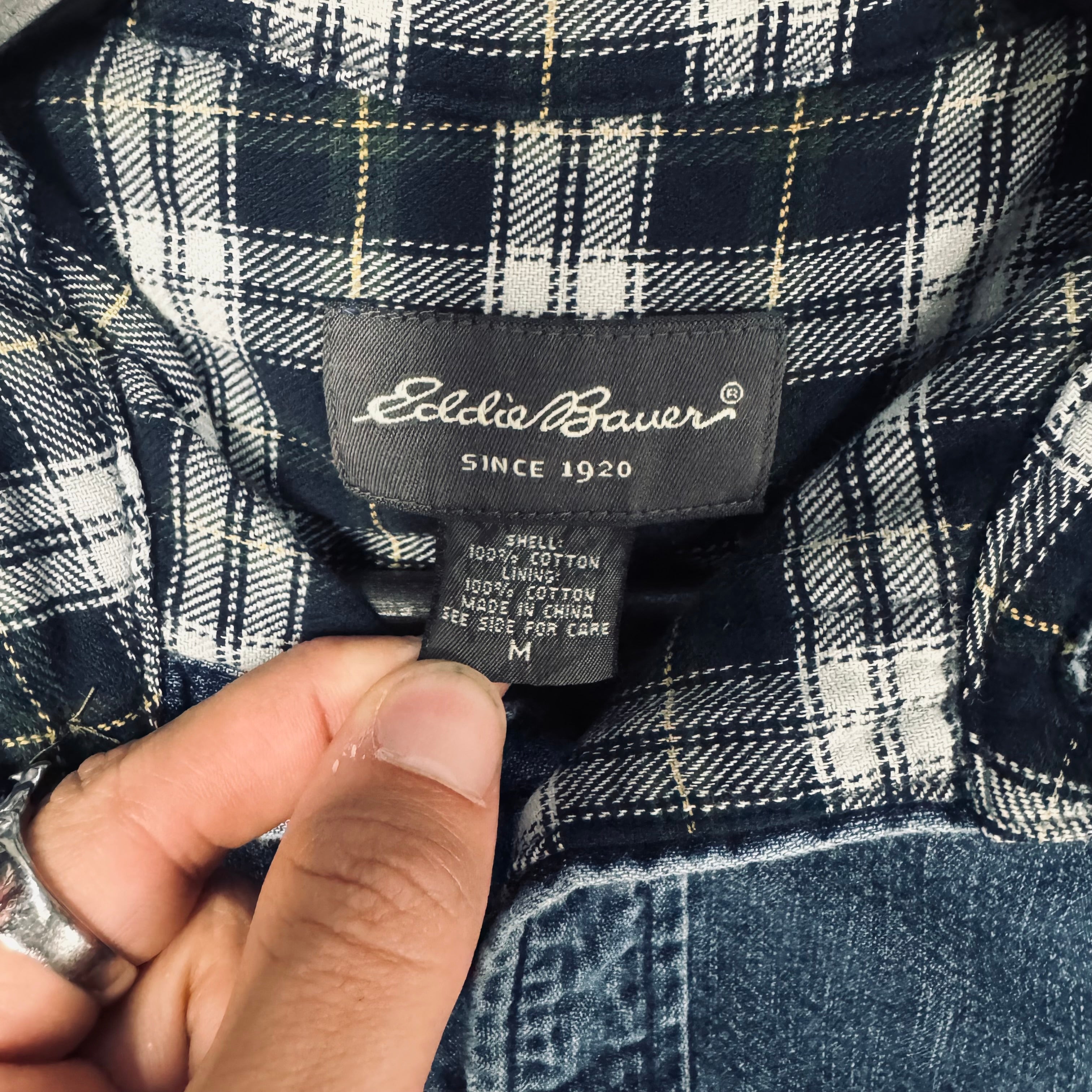 VTG Eddie Bauer Plaid Denim Flannel / M