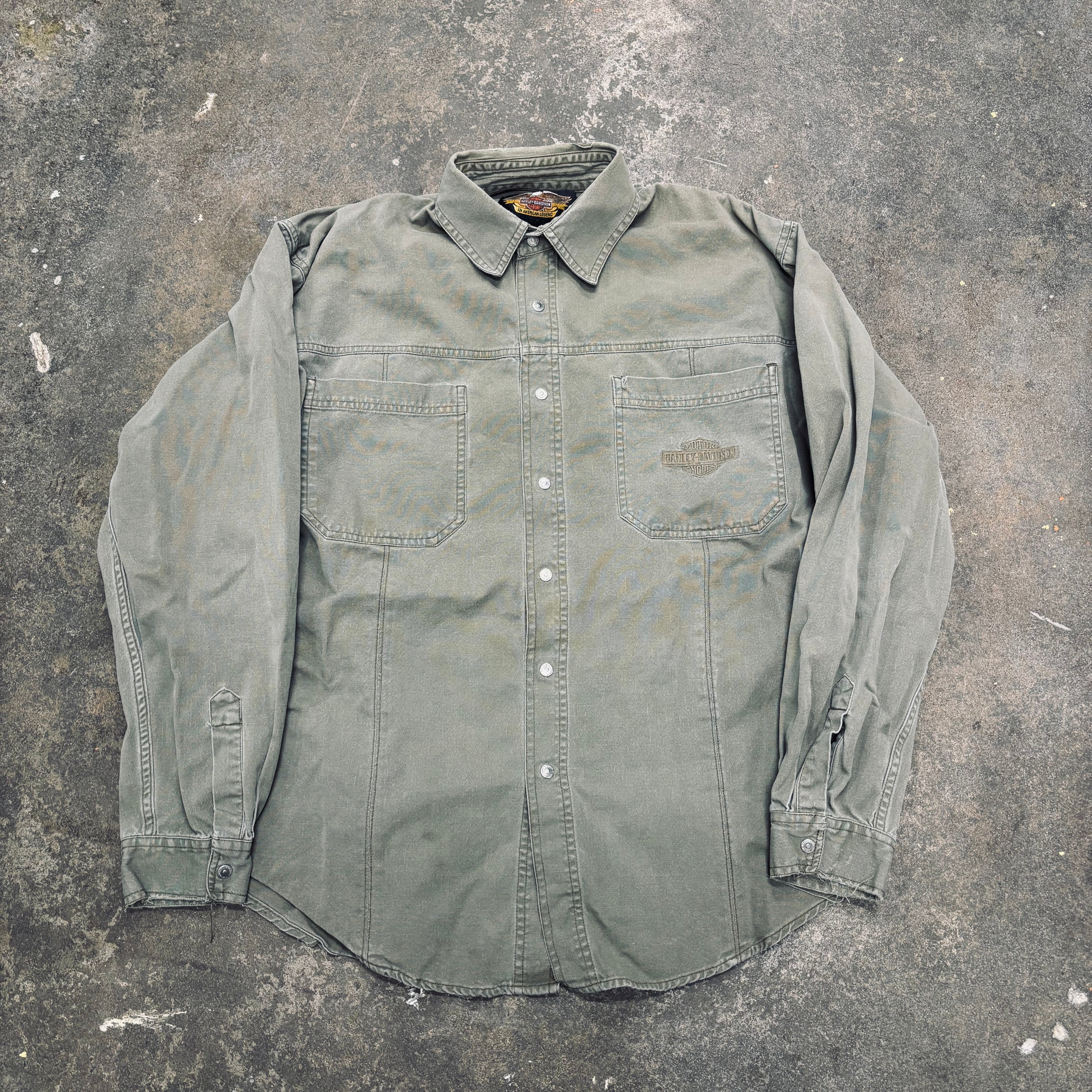 VTG Harley Davidson “olive” Button up shirt - L